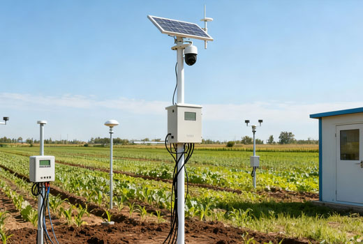 Estaciones de Monitoreo Ambiental: Alimentan nodos sensores para medición de humedad del suelo, temperatura, humedad, luz y plagas.